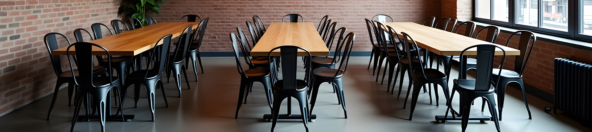 Absolutely. Our powder coating, sling replacements, and vinyl straps come in a wide variety of colors to match your restaurant’s brand.